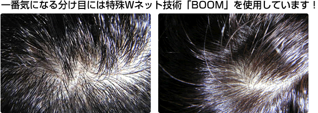 「BOOM」は、特殊な技術で製作しますので、大型の部分かつらや全かつら全体に使用することはできません。