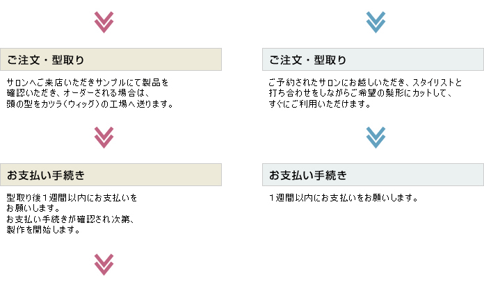 ・カツラ契約時(型取り時)に、申込み金1万5千円(現金)が必要となります。